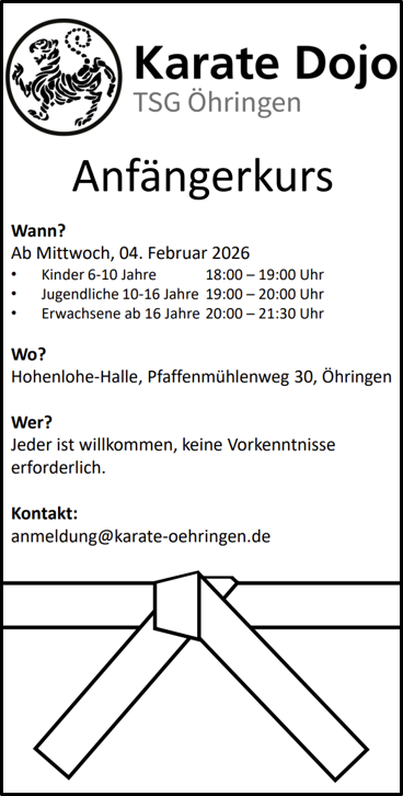 Ab Mittwoch, dem 4. Februar 2026, starten in unserem Dojo neue Anfängerkurse – die ideale Gelegenheit für alle, die sich für das neue Jahr mehr Bewegung vorgenommen haben. Karate ist nicht nur Sport, sondern verbindet jahrhundertealte Tradition mit einem ganzheitlichen Training für Körper, Geist und Charakter.
